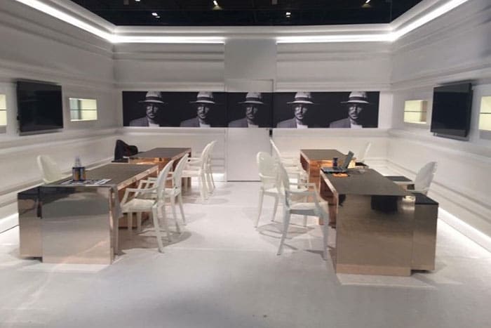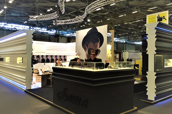Idées Techniques a pensé et fabriqué le stand de la société Sama Eyewear. Une structure entièrement en châssis métallique a été conçue afin de pouvoir soutenir les moulures qui seront fixées sur ces derniers. La volonté du client était de faire deux parties distinctes dans leur stand : une partie noire et une partie blanche. En aérien, nous avons installé de la structure en S avec des projecteurs qui éclairent toute la surface du stand.